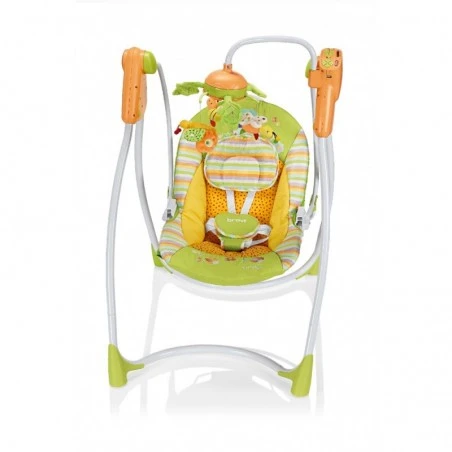 Altalena alta con sedile a dondolo e telecomando Doppia alimentazione: batterie e alimentatore a presa integrato 5 velocità di oscillazione e 8 melodie 3 possibilità di temporizzazione dell’oscillazione: 8,15 e 30 minuti Giostrina girevole con pupazzi e luci Età di utilizzo dalla nascita fino ai 9 kg Caratteristiche Giostra girevole con luci ad intermittenza e 3 pupazzi in tessuto rimovibili per offrire stimoli sonori, tattili e visivi al bambino. Console di comando per impostare il movimento della giostrina e attivazione luci, 8 melodie, 5 velocità di oscillazione, temporizzazione dell’oscillazione (8, 15, 30 minuti). Telecomando in dotazione. Porta USB per riprodurre brani mp3. Seduta con imbottitura in cotone e schienale regolabile in tre posizioni per i momenti del gioco, della pappa e della nanna. Vassoio rimovibile con giochini manuali e spartigambe rigido. Poggiatesta rimovibile in soffice tessuto per offrire massimo comfort al bambino. Cinture di sicurezza a 5 punti e copri fibbia imbottito. Seduta sfoderabile e lavabile in lavatrice. L’arco gioco può essere spostato per rendere più facile mettere e togliere il bambino dalla seduta. Utilizzabile con 4 pile di tipo D (non incluse) o con cavo di alimentazione alla presa elettrica (in dotazione). Seduta con imbottitura in cotone e schienale regolabile in tre posizioni Console di comando Dimensione Altalena Althea Brevi Dimensione aperta: 69L x 90P x 109,5H Dimensione chiuso: 69L x 79P x 109,5H