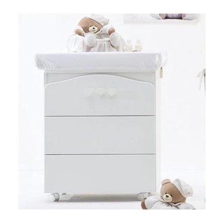 I tre comodissimi cassettoni scorrevoli sono impreziositi da dolci cuoricini.