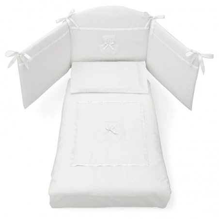 Set 3 pezzi sfilabile ricamato con figure che riprendendo infatti i motivi della omonima cameretta. Tutti i componenti, anche se imbottiti, possono essere lavati in lavatrice a 40°C utilizzando detersivi neutri.