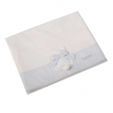 Il set lenzuola per lettino Nanan Fiocco, è formato da 3 pezzi: federa per cuscino, lenzuolino e coprimaterasso.