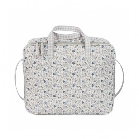 Valigia della collezione Delia di Pasito a Pasito ideata per portare tutto ciò che serve per portarla in clinica e in ospedale o anche per piccoli viaggi. La valigia, realizzata in similpelle stampata con fiori blu include manica lunga per portarla alla spalla ed è caratterizzata dalle dimensioni rettangolari e una pratica apertura. Si può lavare a mano o in lavatrice a 30º. I materiali utilizzati sono esenti di coloranti azoici, ftalati e sostanze nocive alla salute.