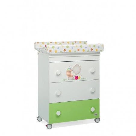 Il frontale del cassetto superiore è decorato con un tenero orsetto.